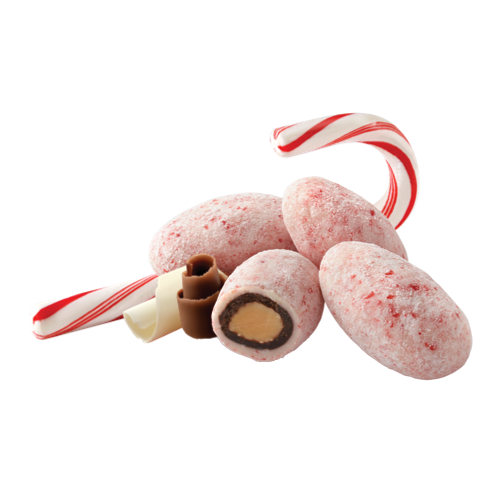 Roasted California almonds covered in layers of dark and white chocolate, infused with crunchy candy cane bits! This product is made with nothing artificial!
