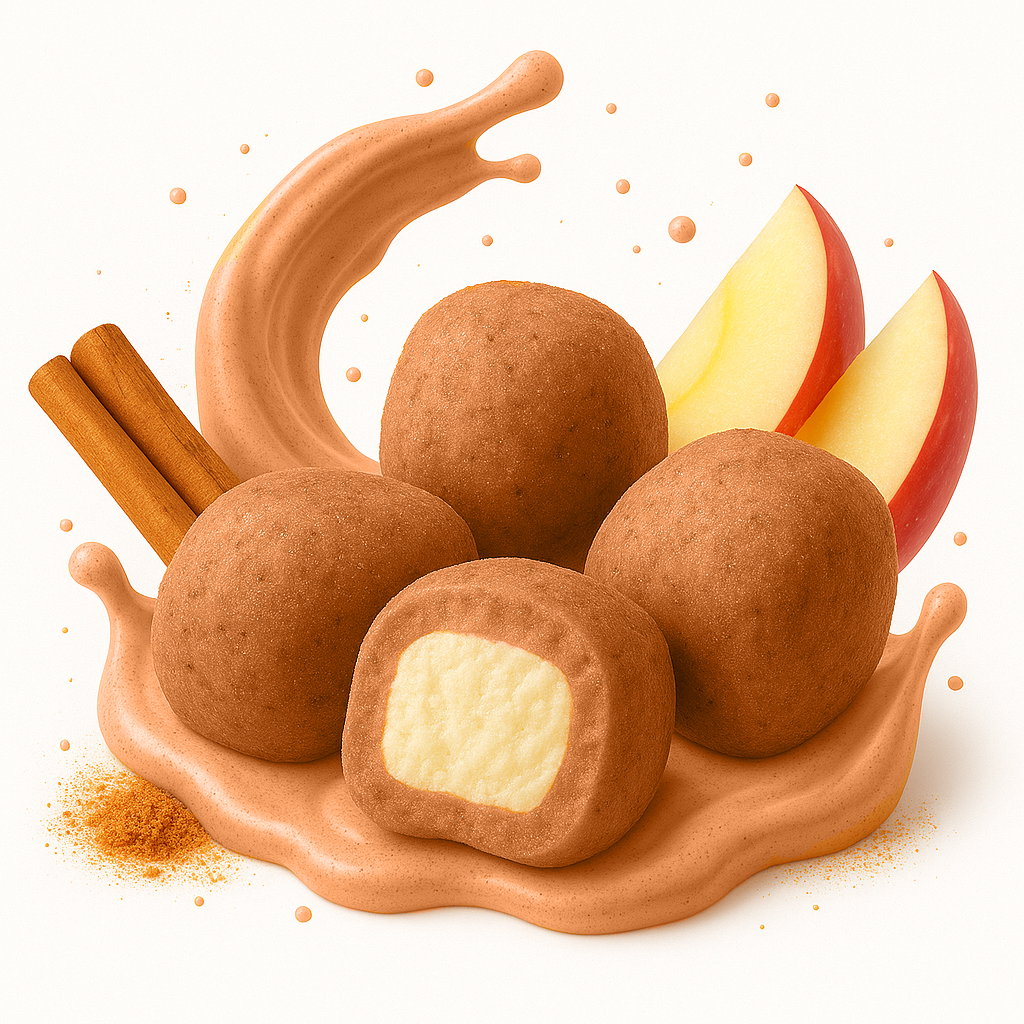 Fall in love with every bite — crisp, airy apples kissed with silky cinnamon yogurt crème and a dusting of sweet cinnamon sugar. Each piece is a tender balance of crunch and creaminess, warmth and sweetness, made with nothing artificial — just pure, simple indulgence.