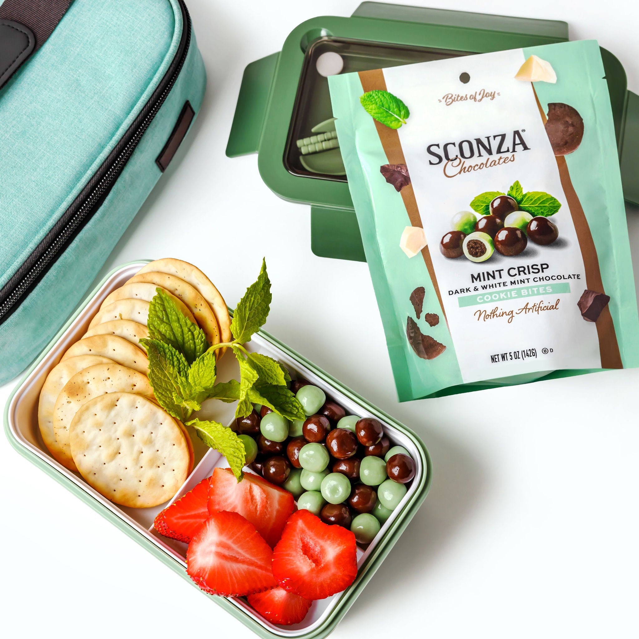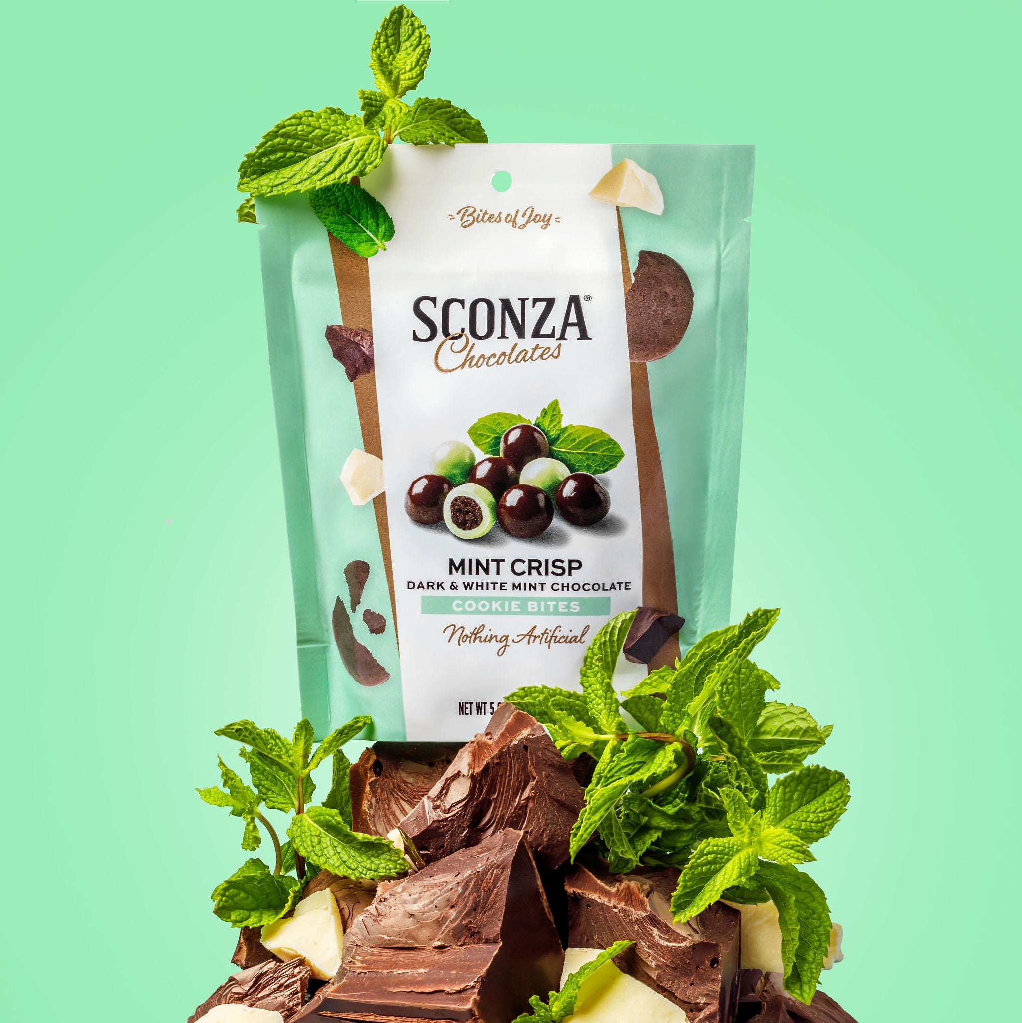 Chocolate crispy cookies wrapped in premium dark & white chocolate that’s delicately infused with mint. A perfectly poppable bite of everyone’s favorite cookie! Made with Nothing Artificial.